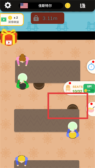2、消耗金币点击UP按钮提升座位数量。