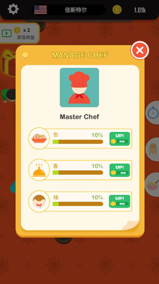 3、员工培养功能:招募服务员与厨师进行技能培训,优秀员工可解锁快速清洁与精准控火等特殊技能。