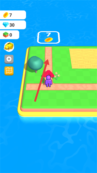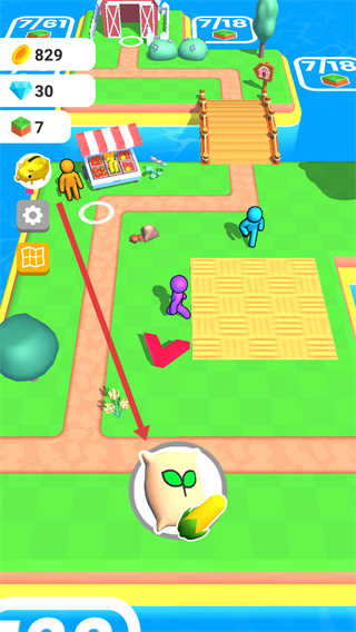 1、游戏中跟随箭头指引前往目标区域,解锁土地和升级农场设施。