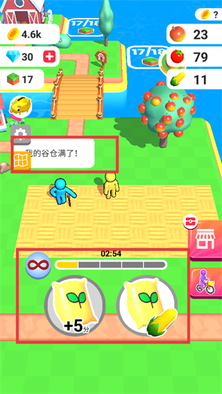1、注意谷仓容量提示,当谷仓满时及时处理,可使用下方的种子道具循环种植农作物。