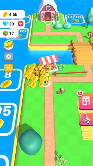 2、跟随箭头指引前往购买地点,把谷仓里的农作物卖出去。