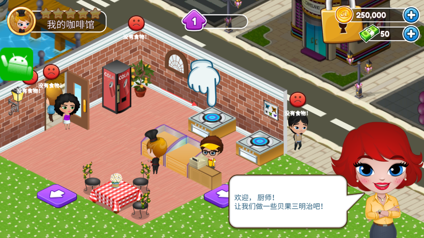 3、装饰设计:玩家可以设计和装饰梦想中的咖啡馆,烹饪美味食物满足顾客。