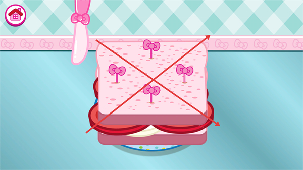 4、烹饪完成后,查看标注的成品三明治,完成本次HelloKitty主题烹饪关卡,解锁对应的美食制作成果。