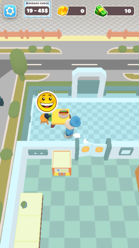 1、看到【Average-Check-15-58$】的餐厅界面,操控角色前往就坐的顾客处,接收订单需求,推进餐厅的服务流程。