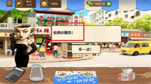 1、看到【经典炒酸奶!】的提示后,点击【来一波!】按钮开启制作任务。