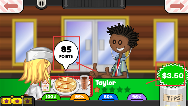 4、完成服务后会获得【85-POINTS】与【$3.50】的收益,同时顾客满意度会影响后续评分,可积累小费提升收益。