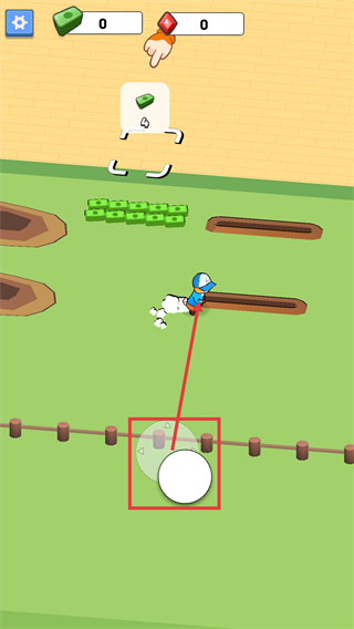 1、通过操控底部按钮控制角色移动,收集场景中的绿色道具,可积累该道具用于后续的资源兑换或升级操作。
