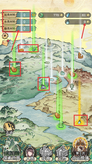 3、收集【泥类材料】【水类材料】【藤类材料】,探索地图资源点,积累资源助力发展。