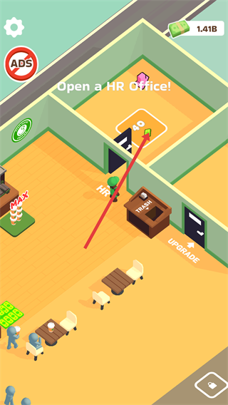 2、按照提示【Open-a-HR-Office!】,移动角色前往HR区域的绿色标识,花费40开启HR办公室,拓展咖啡店功能。