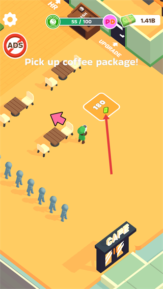 4、继续花费180为咖啡店多开启一张新的餐桌,扩大餐厅规模,完成【Pick-up-coffee-package!】的拾取任务。