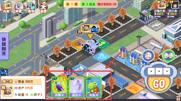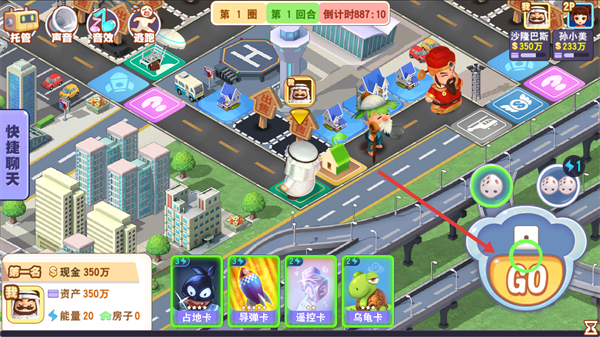 1、进入游戏后点击【GO】,掷骰子移动角色。