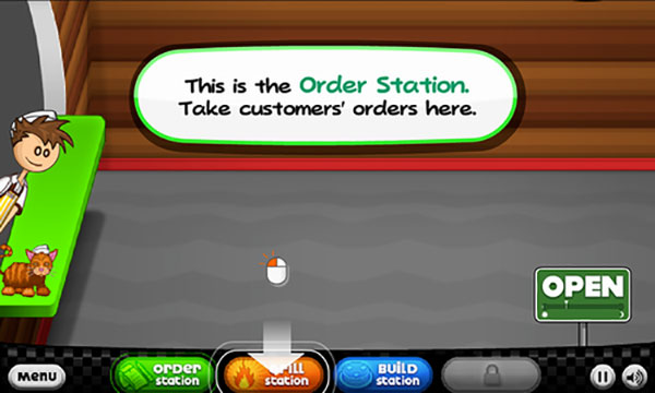 1、看到界面显示【CLOSED】时,注意右侧火焰标识,点击可进入厨房,同时留意顾客状态。
