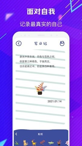 2、支持文字、图片、贴纸、拍立得墙等组合记录,搭配全彩主题与个性化字体,让日记不再枯燥。