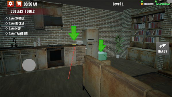 1、在Level1中,按照任务要求收集工具,先找到海绵并拾取。