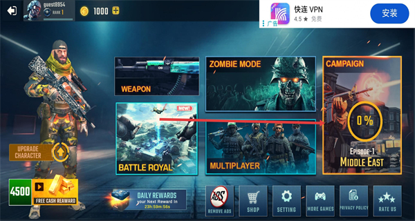1、在游戏主界面,点击CAMPAIGN战役模式选项,进入关卡选择页面。