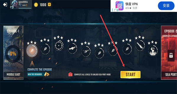 2、在战役关卡页,点击START按钮,进入武器选择界面,准备配置战斗装备。