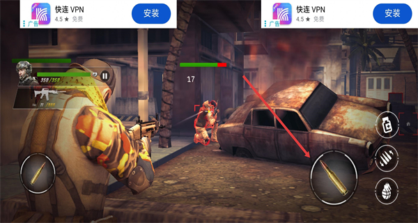 4、战斗过程中,可点击右侧子弹图标按钮,进行瞄准并射击敌人,击倒敌人推进战役关卡进度。