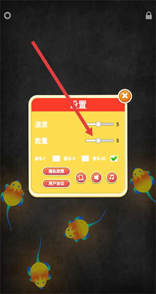 3、在设置面板里,可以滑动调节“速度”“数量”等参数,增加老鼠玩具数量进行游玩。