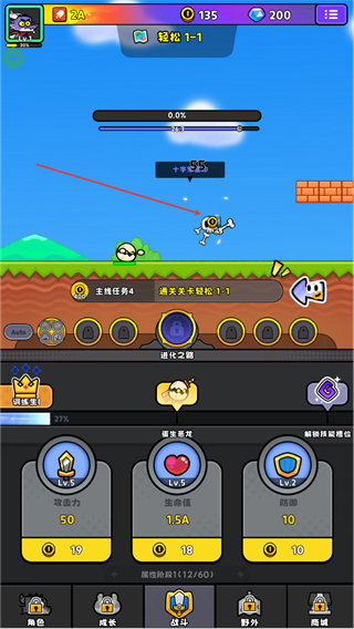 4、攻击变身敌人,消耗其血量,逐步完成通关关卡1:2的任务目标。