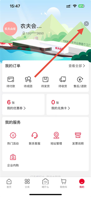 送水到府里头提供了农夫山泉水产品的订购,用户下单后即可享受送水到家,送水到府定期会做相关的活动,例如买赠活动以及送券活动,优惠券直接在送水到府内使用,可以当现金抵扣。