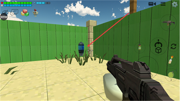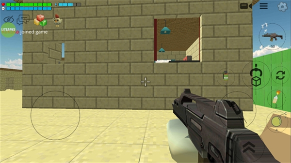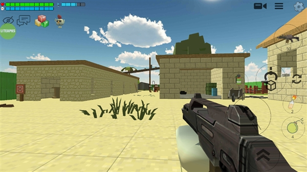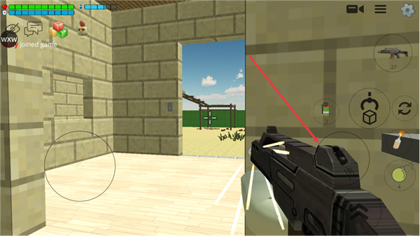 3、游戏内通过左侧虚拟按键控制角色移动,右侧按键可执行射击、切换武器等操作,还能使用手雷类道具,界面顶部会显示角色的血量等状态信息。