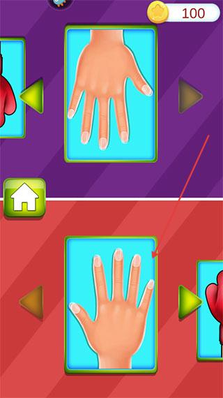 3、在对局中,通过点击箭头按钮操作自己的手掌,与对方进行互动比拼。