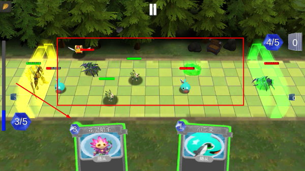 4、把握时机召唤【花灵射手】,瞄准敌方关键单位发起攻击,借助其高伤害特性快速击破敌方防线,推进战斗进程。