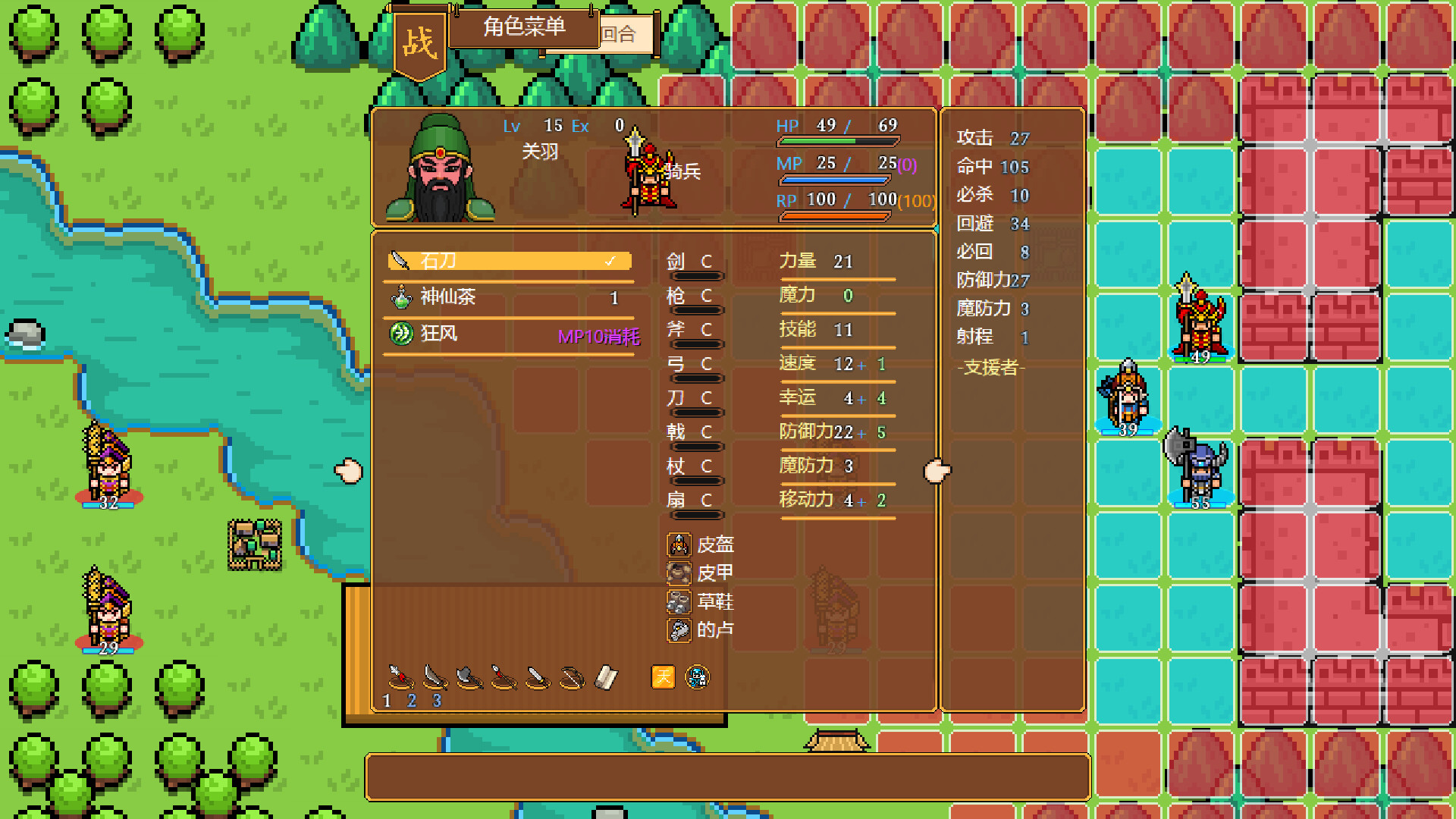 经典的回合制战棋玩法,玩家需指挥部队在网格地图上移动、攻击或使用技能,利用地形和兵种优势击败敌人,最终统一中原。