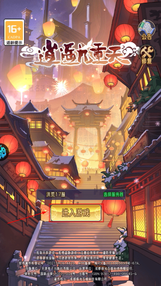 1、在《逍遥九重天》启动界面点击【进入游戏】,选择对应服务器,开启修仙养成流程。