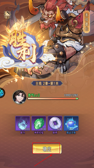 4、通关主线后点击【确定】领取奖励,用于提升修为或解锁新功能,持续推进修仙进程。