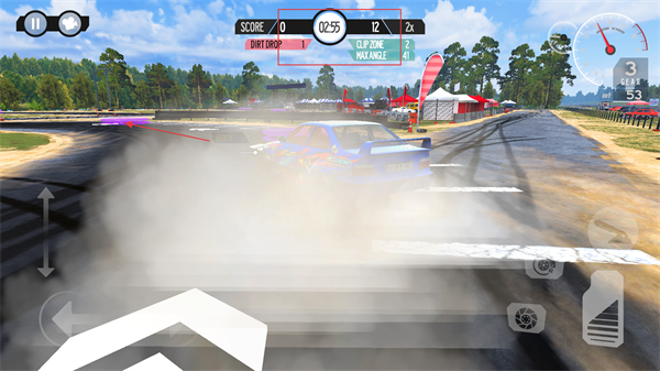 2、比赛中关注赛车的操控按钮(如油门、刹车),合理控制赛车速度,为漂移做准备。