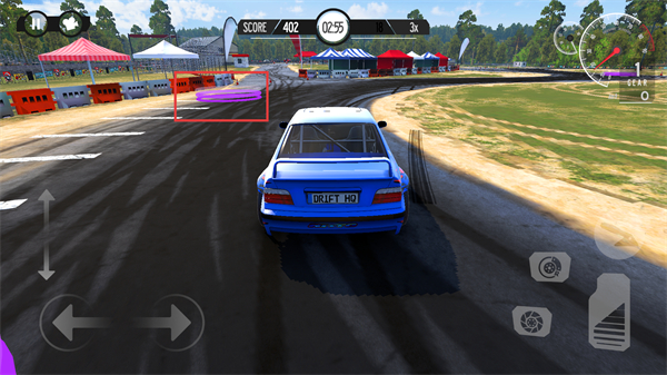 4、注意比赛时间限制,在紫色漂移区域内完成漂移动作,积累分数(如402分),提升游戏排名。