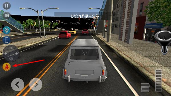 2、驾驶时注意界面提示的【你没有系紧安全带】,通过左侧的【操作按钮】系好安全带。