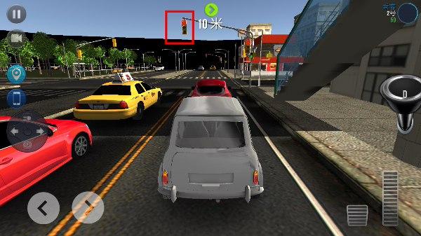 3、行驶中关注【交通信号灯】的状态,结合路况调整车辆行驶轨迹,留意上方的【距离提示】。