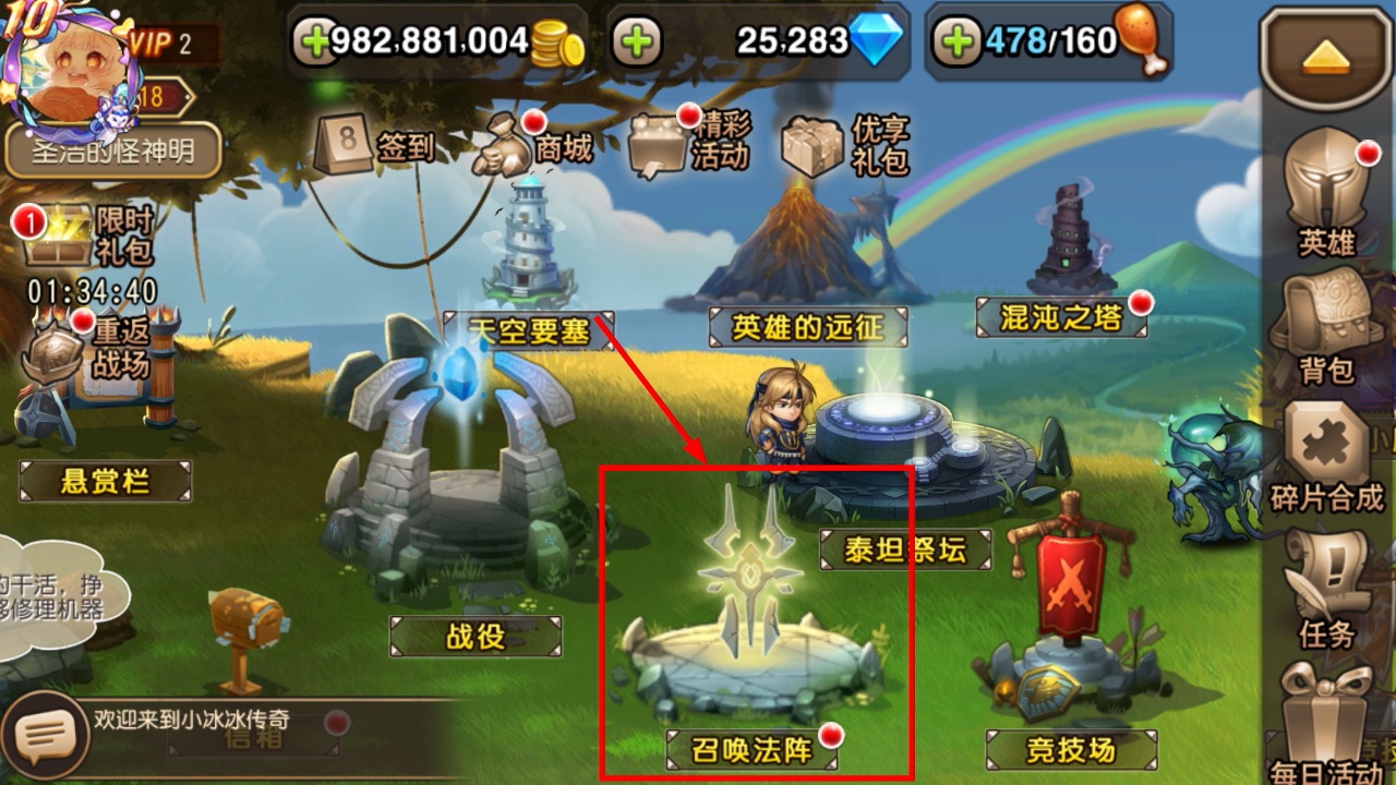 1、点击召唤法阵可进入对应界面,探索获取强力英雄的核心途径,助力提升队伍整体战力。