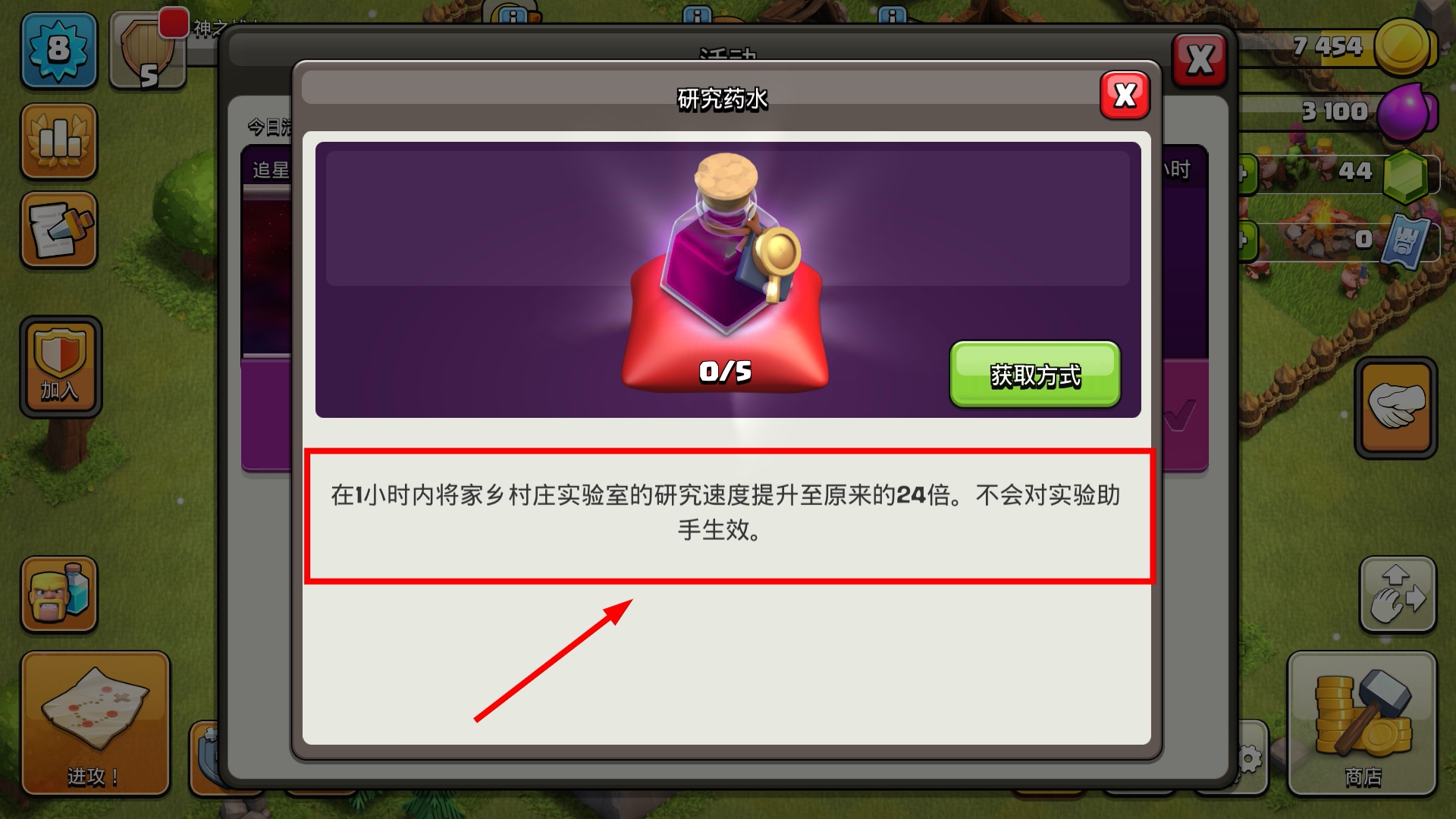 2、使用【研究药水】可让实验室研究速度提升至24倍,持续1小时,助力快速解锁科技提升战力。