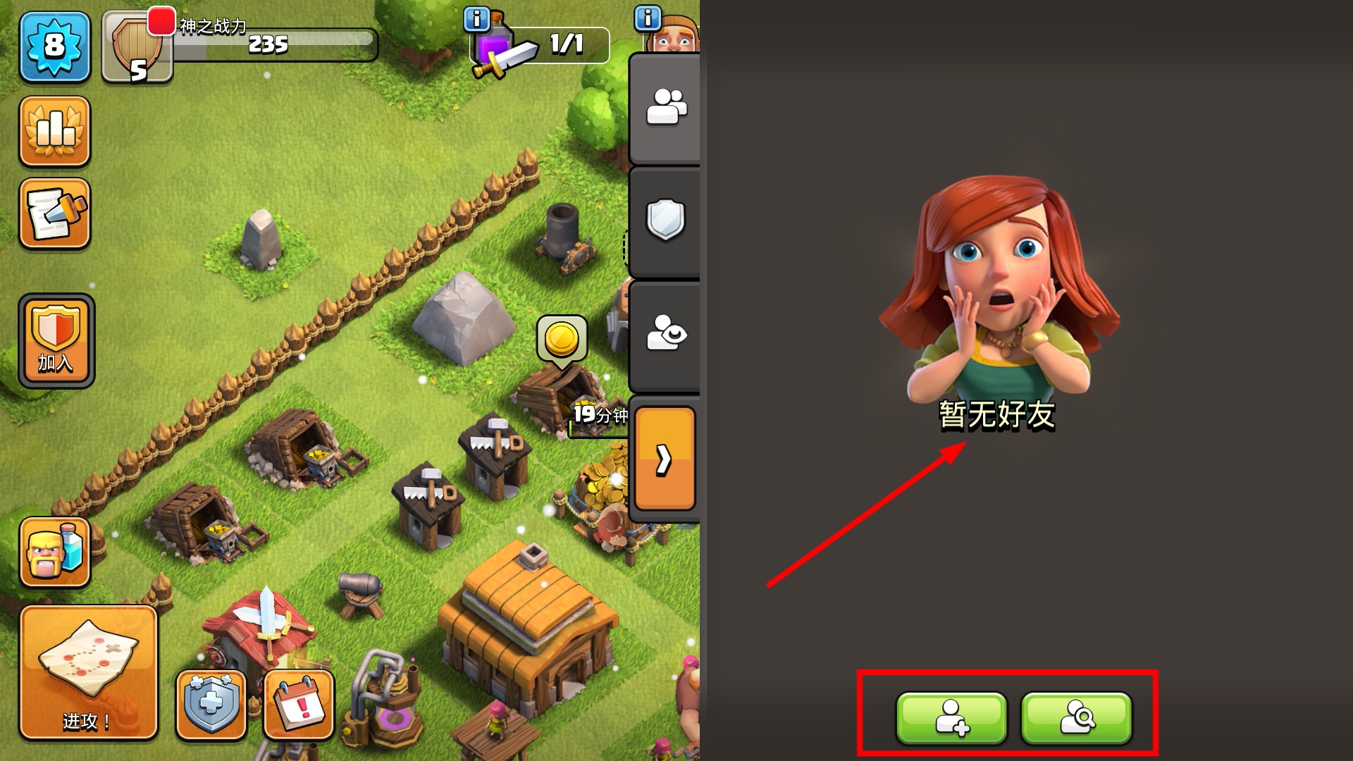 2、在显示暂无好友的界面,可通过下方的添加或搜索按钮,寻找其他玩家建立游戏内的好友关系。