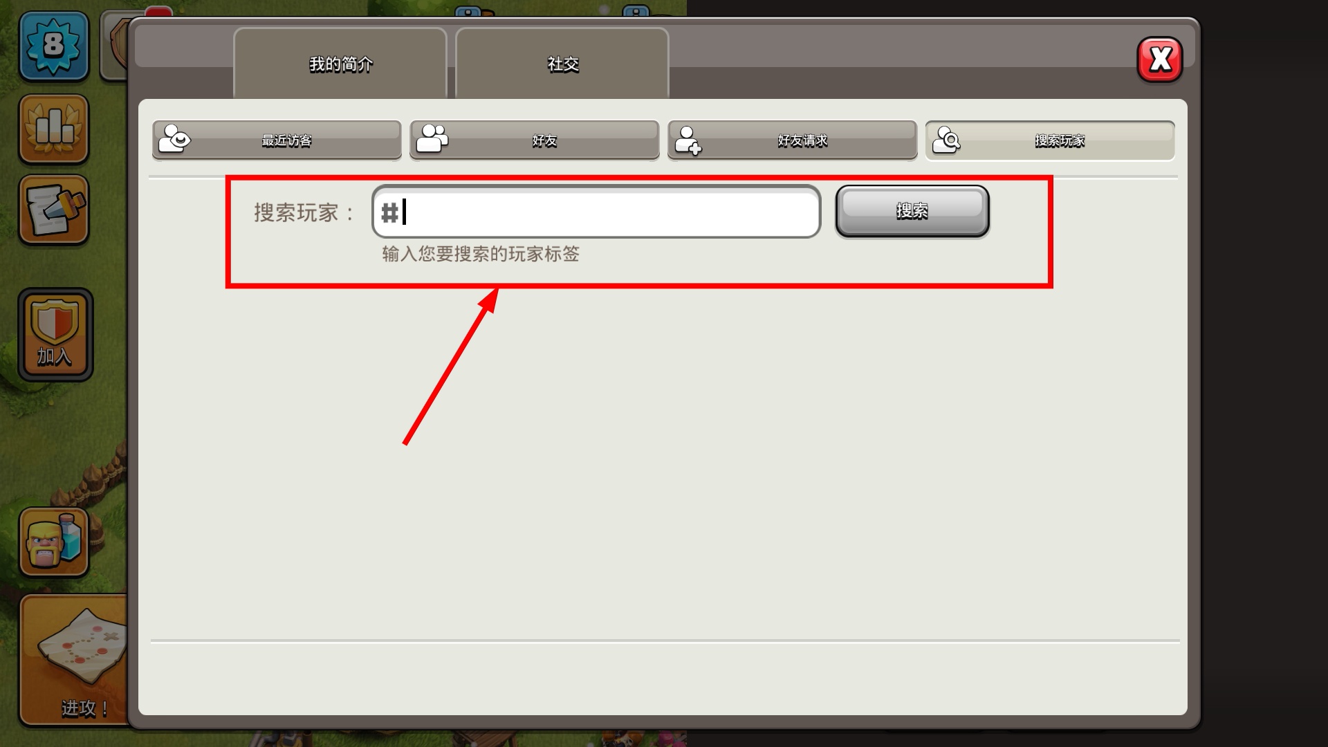 3、进入搜索玩家界面后,在输入框填写目标玩家的标签,点击搜索按钮就能找到对应的游戏玩家。