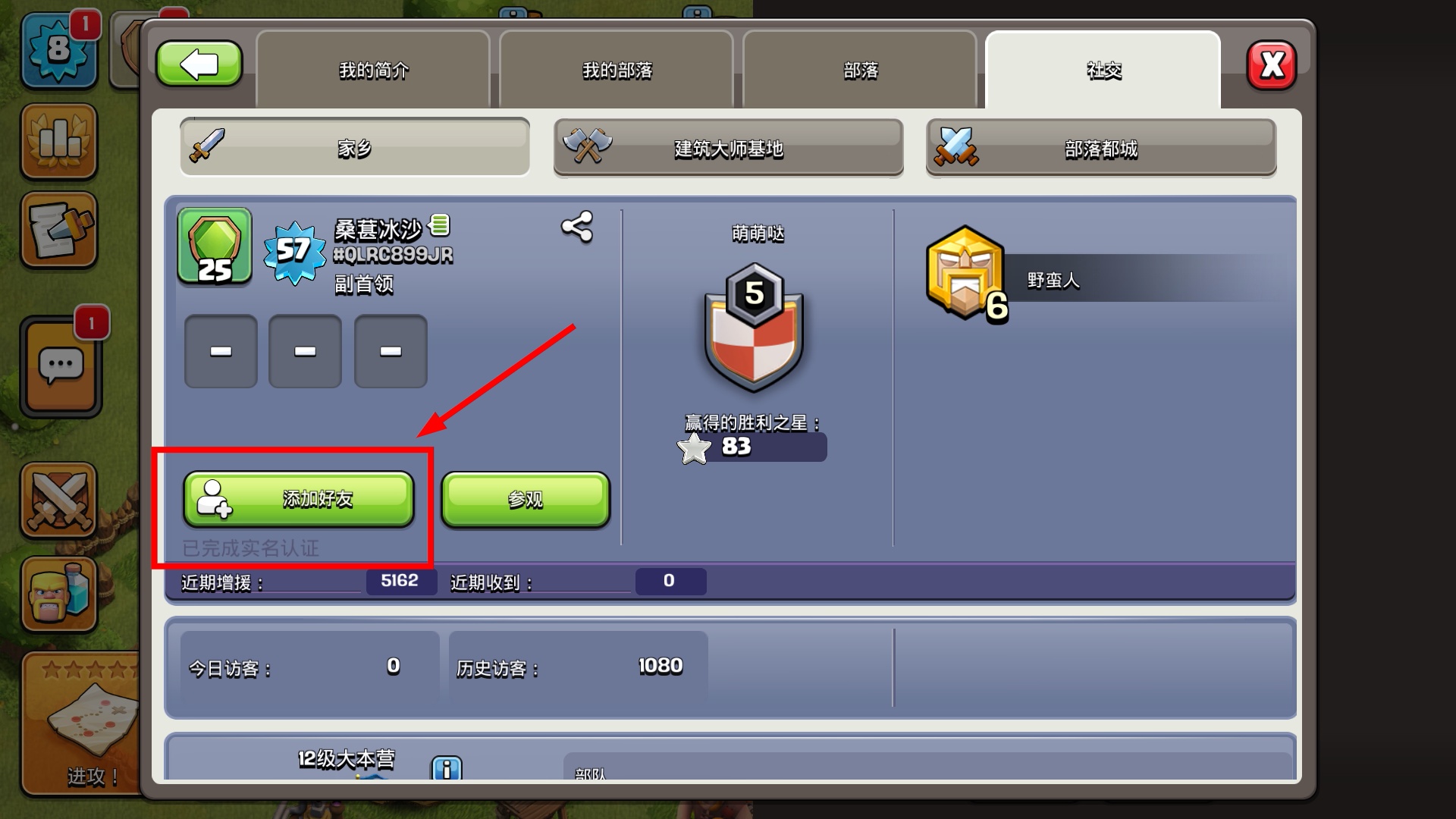 4、找到目标玩家的信息界面后,点击【添加好友】按钮,完成操作即可与该玩家成为游戏好友。
