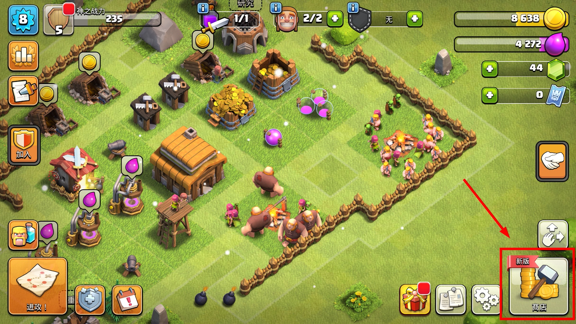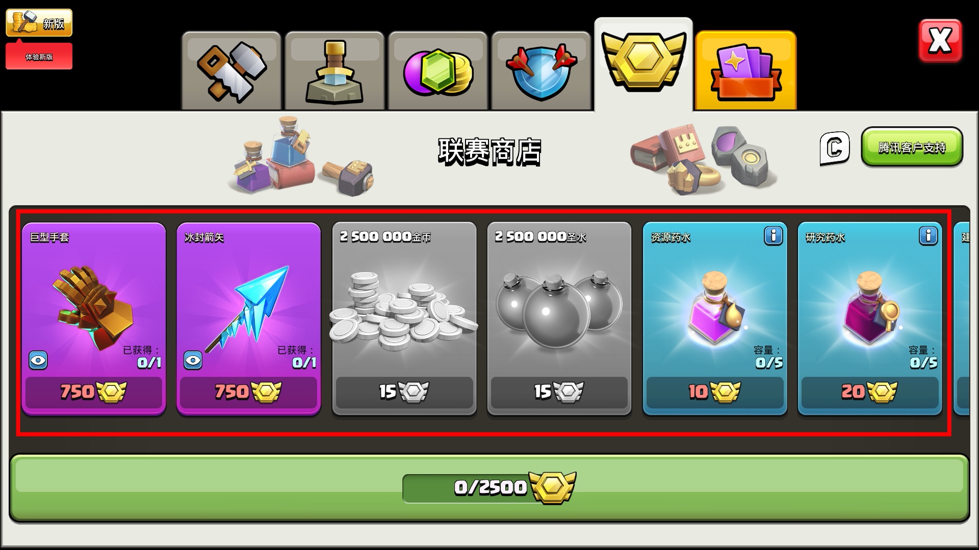 4、在【联赛商店】用勋章兑换【巨型手套】【冰封箭头】,有效提升军队战斗力与资源获取效率。
