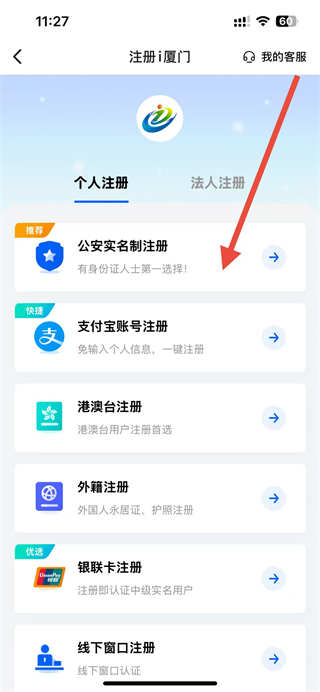 3、选择注册方式,按照所选注册方式的提示,完成身份验证、信息填写等操作,即可完成账号注册。