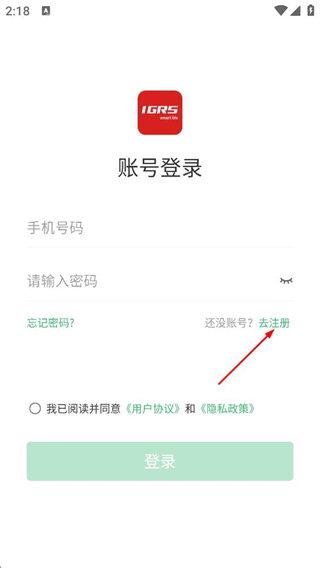 2、在账号登录页,点击去注册按钮,进入注册页面。