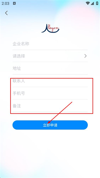 3、最后填写联系人、手机号码、备注后,点击立即申请,完成申请。