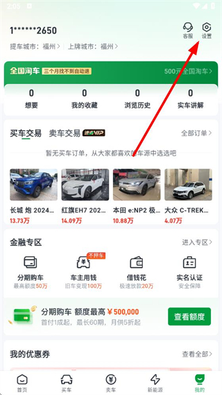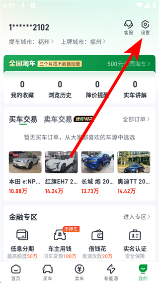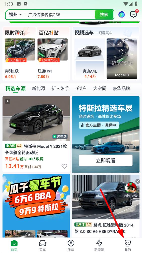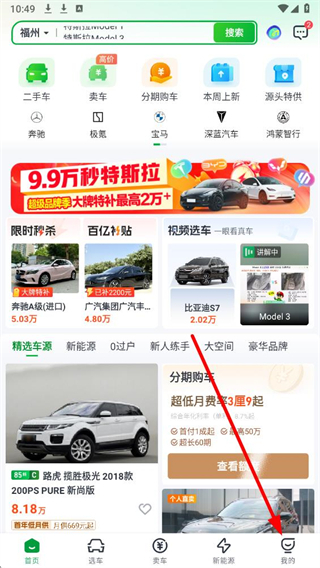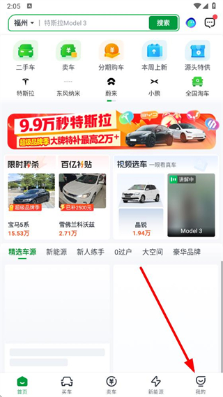 1、在瓜子二手车主界面,点击底部我的,进入个人功能页。