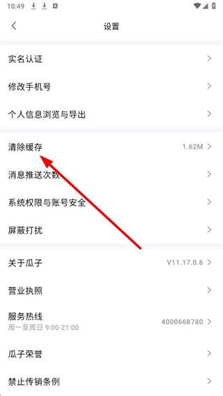3、在设置界面里,找到清除缓存选项并点击,即可清理当前缓存数据。