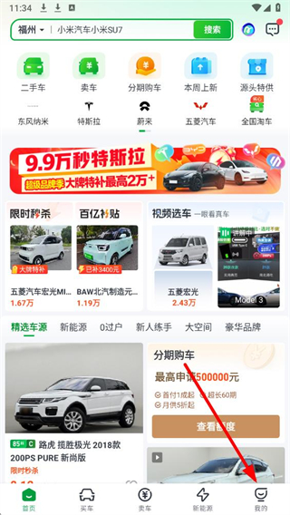 1、进入瓜子二手车app主界面后,点击首页底部我的选项,进入我的页面。