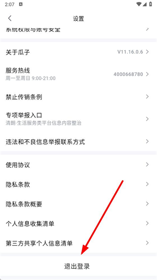 3、在设置页面中,点击底部找到退出登录选项,弹出是否退出登录的确认弹窗。