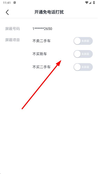 4、在开通免电话打扰页面,可根据需求选择屏蔽项目,开启对应的免打扰设置。