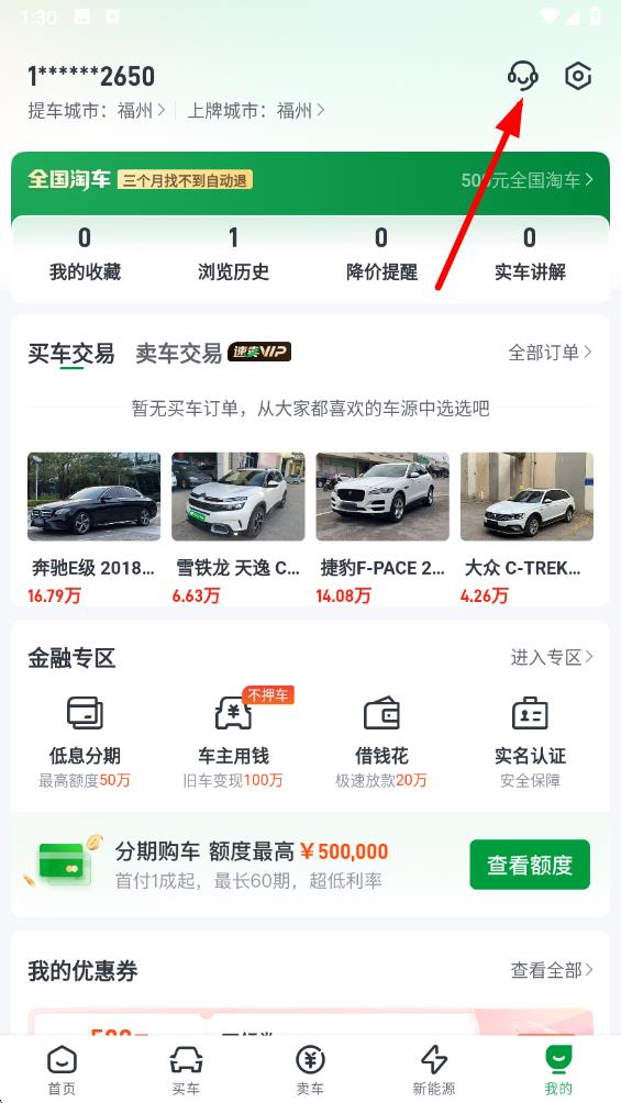 2、在个人界面右上角,点击客服图标,进入客服服务页面。