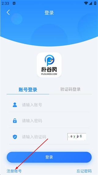 3、在登录页面,点击注册账号选项,进入注册账号页面。